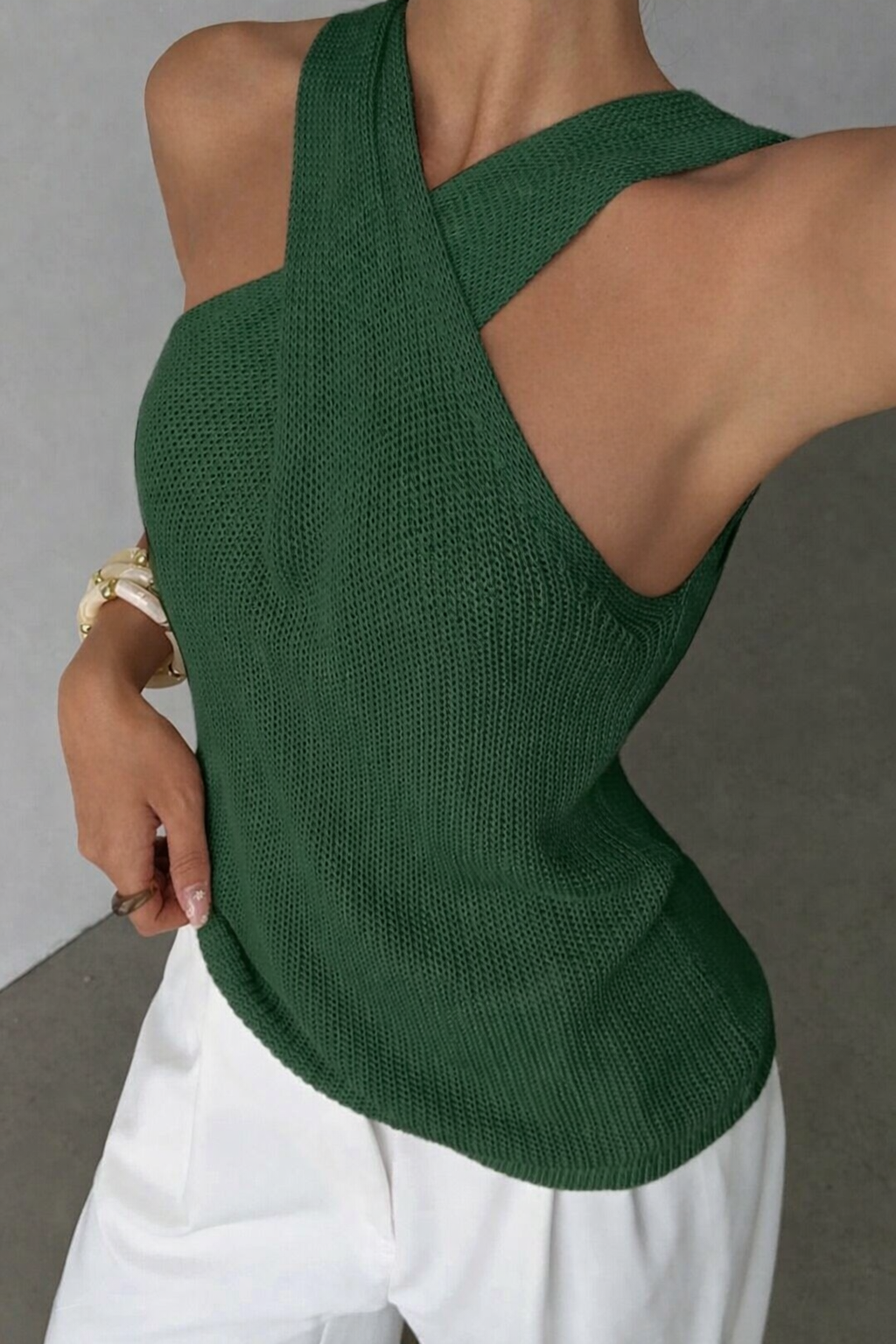 Be the first to review “Criss-Cross Neckline Casual Knit Top”
